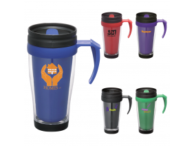 Bullet SM-6679 | Venice 14oz Travel Mug: Double-wall construction. Push-on lid with slide-lock drink opening. To maximize imprint life, hand wash and follow all recommended care guidelines. 14oz. |