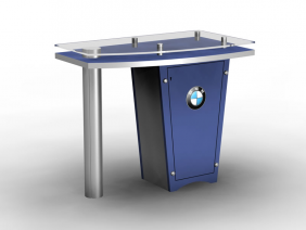 MOD-1266 Visionary Designs Modular Pedestal: There are nearly 200 choices in the Counters and Pedestals gallery at a range of prices and features. Nearly all come with locking storage. Most counters and pedestals are modular, meaning they disassemble for shipping, but there are quite a few custom counters which ship fully assembled. Don't see exactly what you want? No problem. We specialize in designing and building counters and pedestals that meet any need. When choosing the right counter or pedestal for your display, consider how you will use it on the show floor. Do you need locking storage? Will the counter or pedestal hold a lead retrieval machine, laptop, or other electrical device? If so, you will need wire management. That may be as simple as ordering a grommet for the counter. If you are planning to use a tablet computer, consider the tablet insert option for the counter top. This option is practical, attractive, and secure for many... |