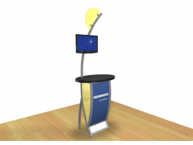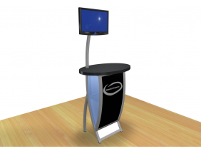 MOD-1244 Monitor Stand: Workstations and Kiosks have become indispensable to most trade show displays. It's hard to imagine a booth without a monitor, laptop, or tablet computer anymore. You'll find nearly 100 choices in the Workstation and Kiosk gallery at a range of prices and features, many with locking storage. Most are modular, meaning they disassemble for shipping, but there are quite a few custom workstations which ship fully assembled. Don't see exactly what you want? No problem. We specialize in designing and building workstations and kiosks that meet any need. When choosing the right workstation or kiosk for your display, consider how you will use it on the show floor. Do you need locking storage? Will the workstation or kiosk hold a lead retrieval machine, monitor, or other electrical device? If so, you will need wire management. That may be as simple as ordering a grommet for the counter or arranging for cord covers. If... |